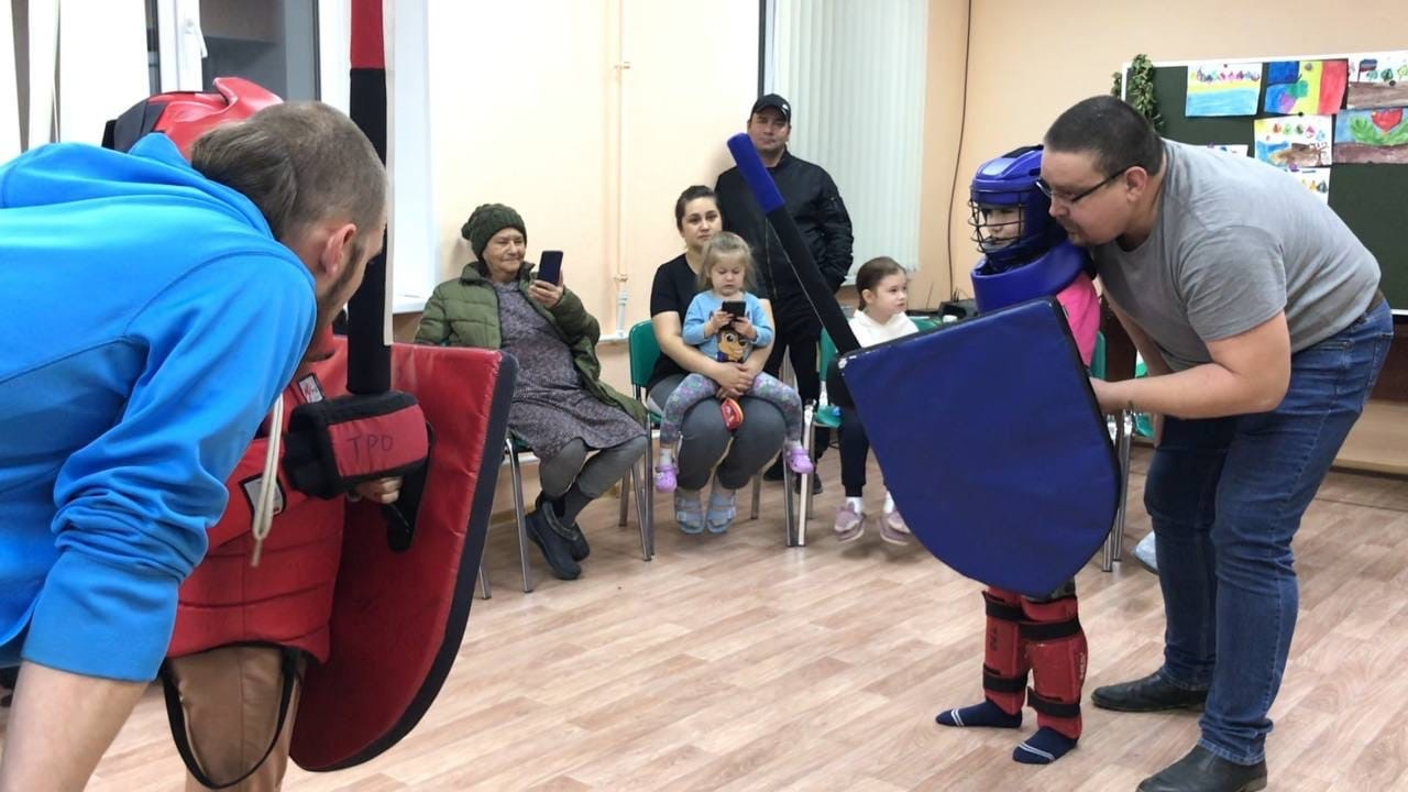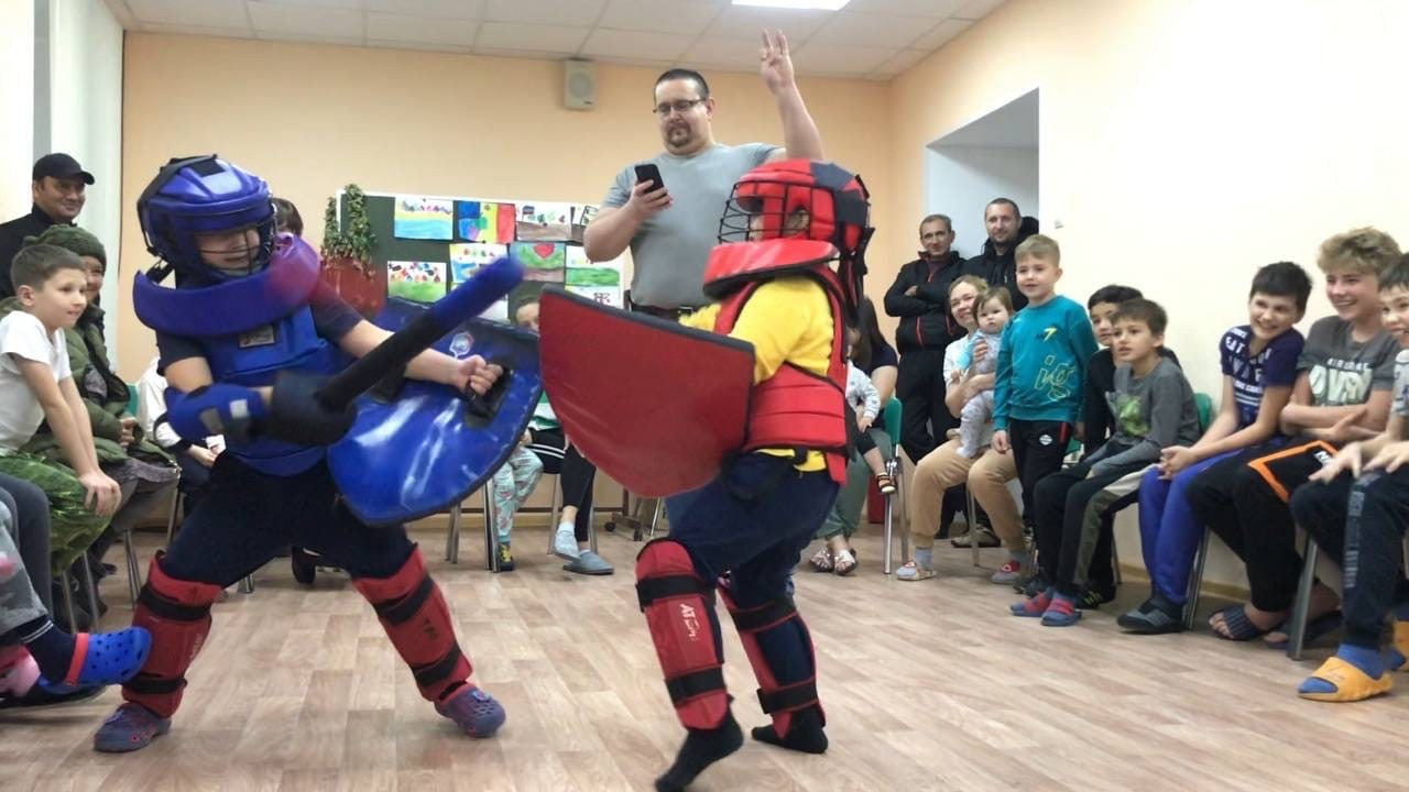 В Центре временного размещения соотечественников тренеры Тульского регионального отделения Федерации современного мечевого боя России Сергей Сидоров и Григорий Морозов провели мастер-класс по современному мечевому бою (СМБ).