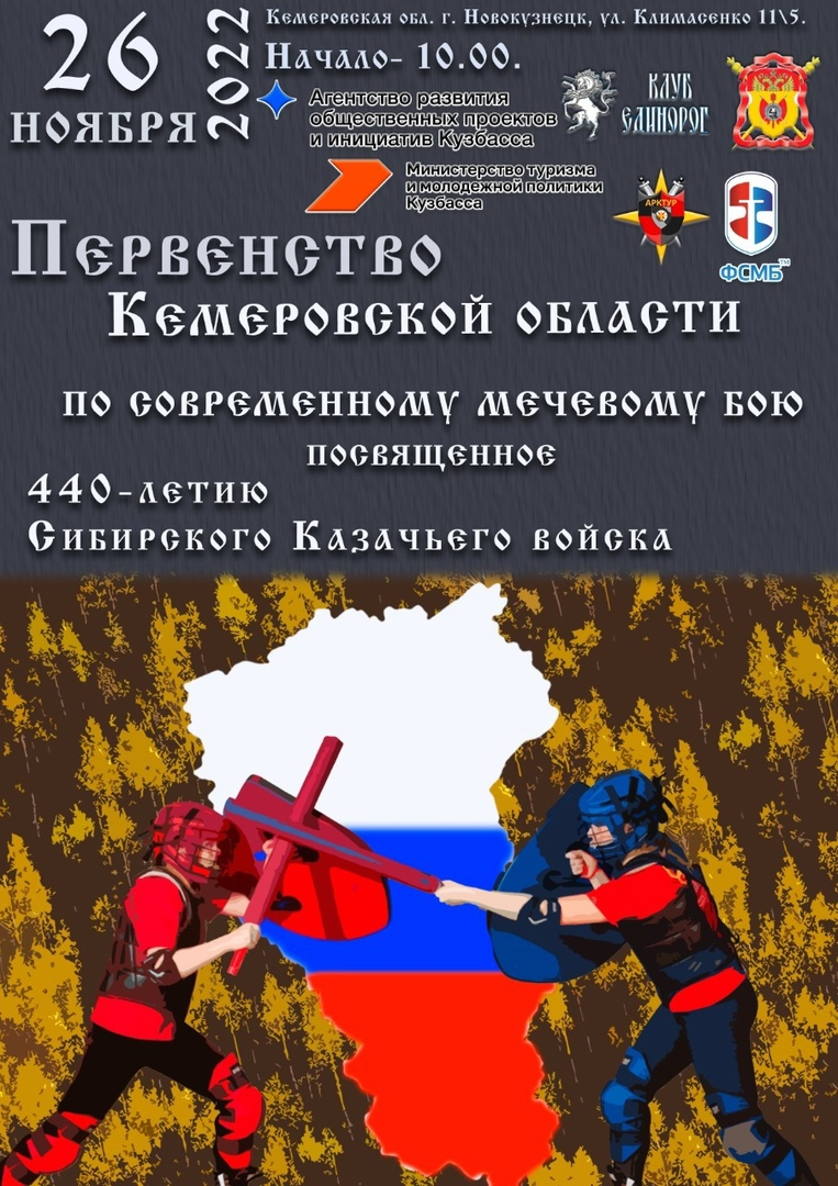 26 ноября 2022 года в г. Новокузнецке впервые будет проходить " Первенство Кемеровской области по современному мечевому бою, посвященное 440- летию Сибирского казачьего войска"
