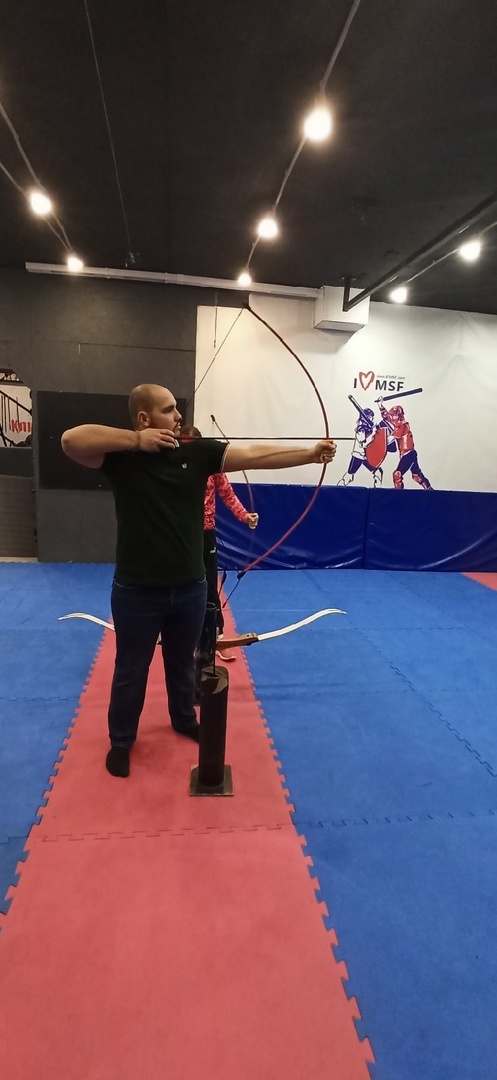 В рамках пробного занятия ребята познакомились с базовыми навыками мечевого боя и олимпийской стрельбы из лука.
