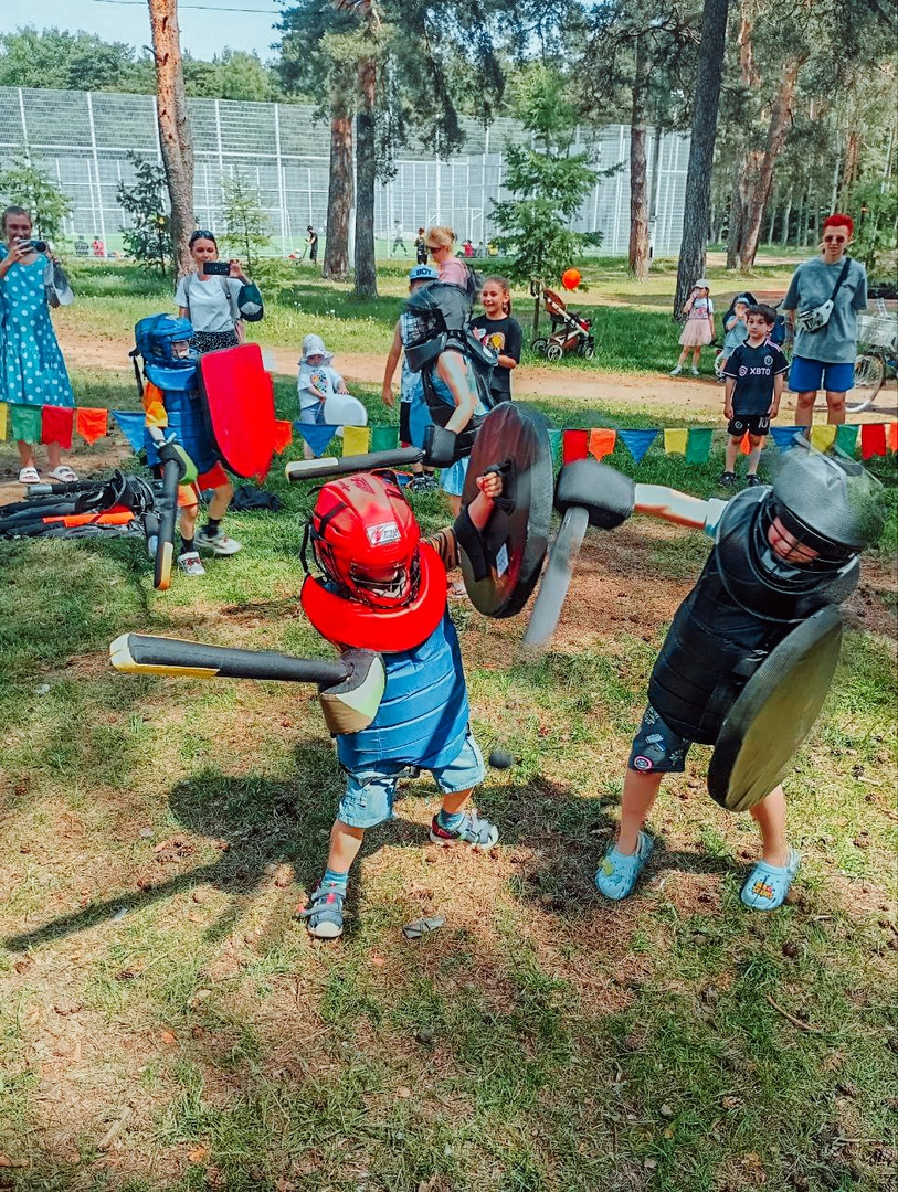 ⚔ А в подмосковных Котельниках в те же выходные работала открытая площадка по современному мечевому бою. В Кузьминском лесопарке прошел большой праздник с музыкой, мастер-классами и играми. В этот раз проводить площадку по СМБ нашему тренеру помогали ребята, которые совсем недавно сами пробовали свои силы в таком мастер-классе. Вот такой круговорот получается: в прошлом году попробовал сам, а в следующем уже помогаешь пробовать новое другим. А значит – мы все делаем правильно!