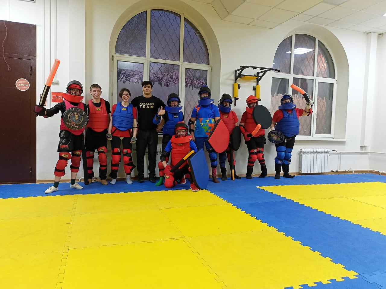 А потом Алевтина пригласила нас в гости в зал, где проходят тренировки по Адаптивному мечеву бою. Фехтование СМБ при ОВЗ. В спарринге с нами стояли ребята с ДЦП. С виду совсем нерасторопные. Вот только некоторые из них оказались чемпионами в своей Лиге и явно демонстрировали своё преимущество перед нами. Обидно не было, скорее наоборот, это лишний раз доказывает, что инвалидность не помеха занятиям спортом. И что тренированный спортсмен с ОВЗ может быть успешнее здорового.