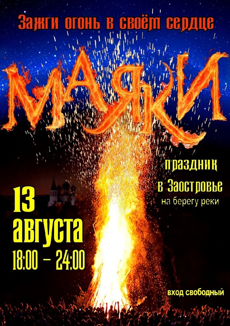 Так уж повелось, что в ночь с 13 на 14 августа в Заостровье жгут большие костры-Маяки. Примечательно, что ударение в название этого праздника ставится на букву "я" - так издревне в Заостровье произносили слово, обозначающее костры, которые жгли в деревнях. В каждой деревне был свой "Маяк".