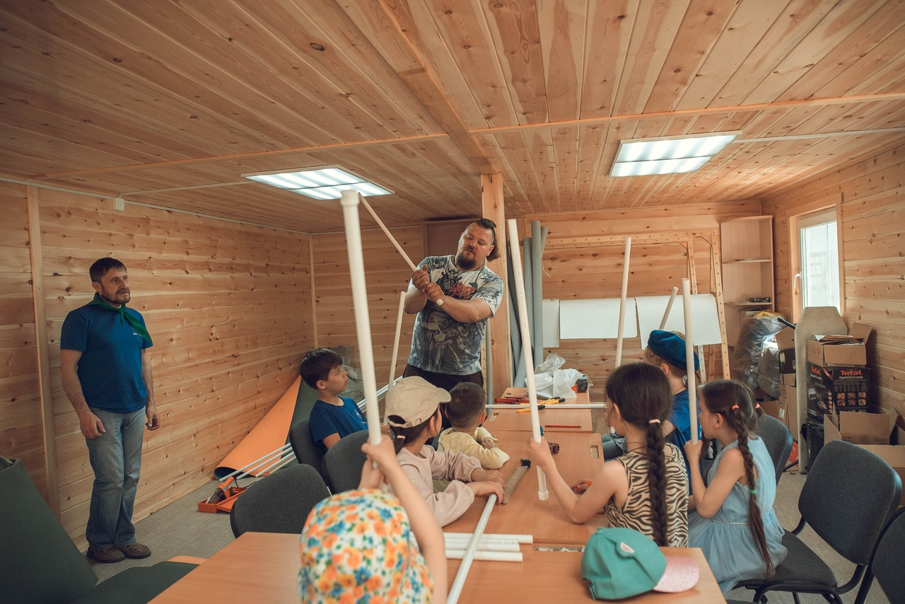 На прошедшем уроке маленькие воспитанники постигали мастер-класс от специалиста по изготовлению мягких мечей для современного мечевого боя, узнали их предназначение в игре.