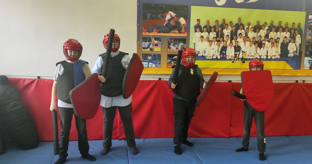 Рассказали ребятам о том, что СМБ - это полноконтактный вид единоборств, который придумали в России, и о том, что такое фехтование абсолютно безопасно. А то, что это невероятно весело и интересно, дети узнали уже на практике - вместе с нами в этот день в новой дисциплине пробовали себя 50 учеников гимназии 😜