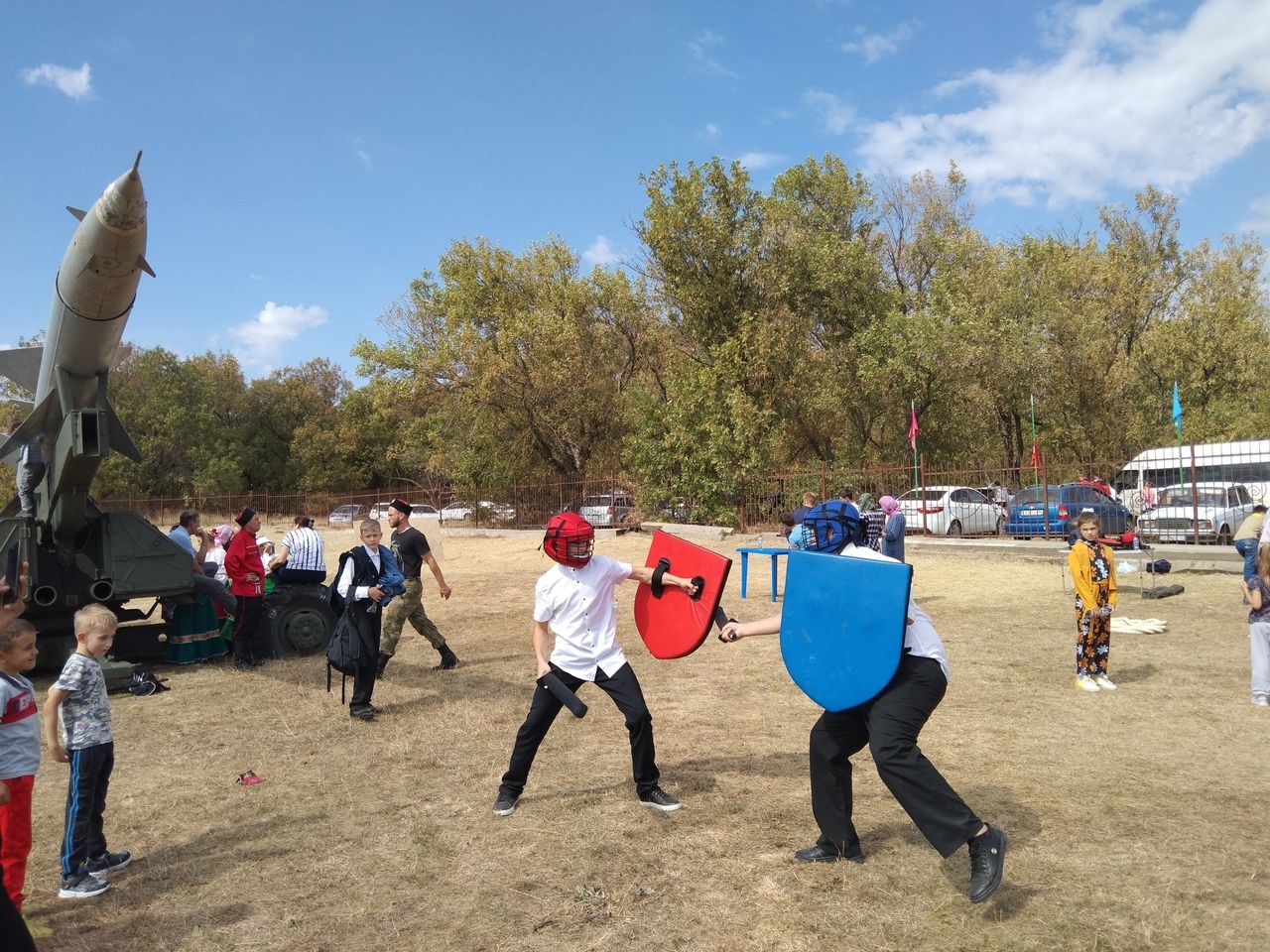 После молебна и трапезы из полевой кухни, участников мероприятий ожидала внушительная культурно-познавательная программа, активной частью которой стало знакомство молодежи с древнерусской контактной игрой в мяч «Килой» и «Современным мечевым боем»🔥После краткого инструктажа, знакомство моментально переходило в практическое освоение игрового процесса 🤾♂ и навыков ведения поединка 🤺...