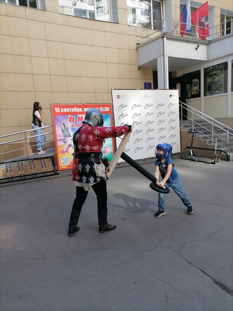 Мы развлекали зрителей двумя мастер-классами: метанием сулиц в мишень и фехтованием на мягких моделях средневекового оружия по правилам современного мечевого боя. Мастер-классы привлекли внимание как юных участников, так и их родителей. А метать копья пришли даже педагоги других объединений и представители администрации. Для создания дополнительного антуража мы, как и всегда, оделись в тематические костюмы. Довольные лица посетителей мы запечатлели на фото, чтобы и вам, дорогие читатели, передать немного праздничного настроения.