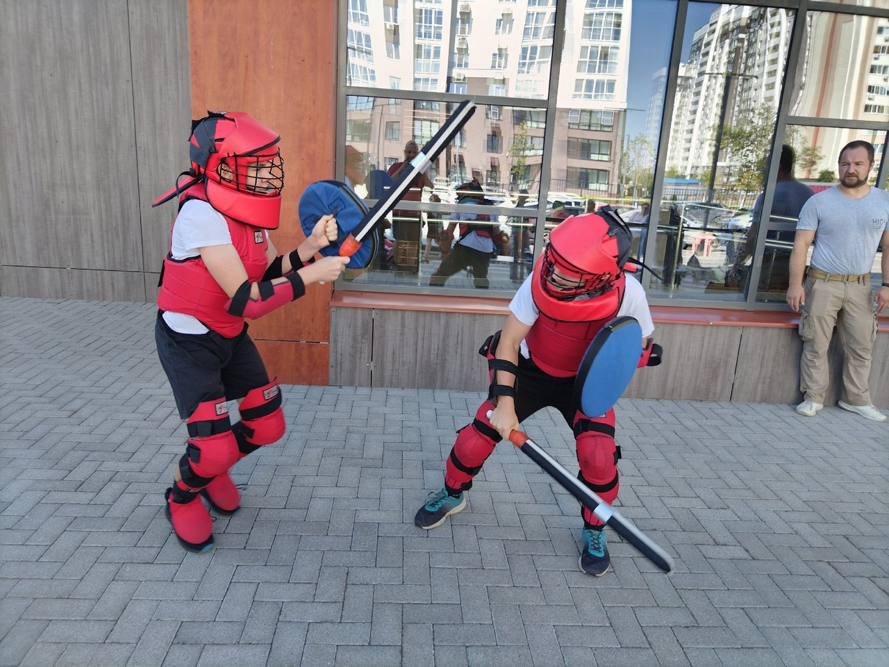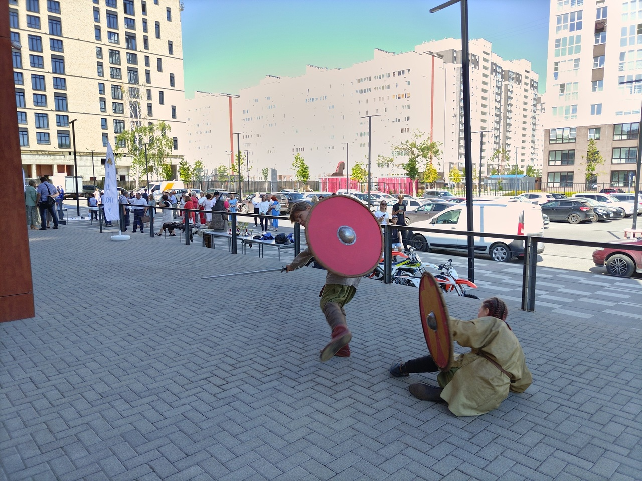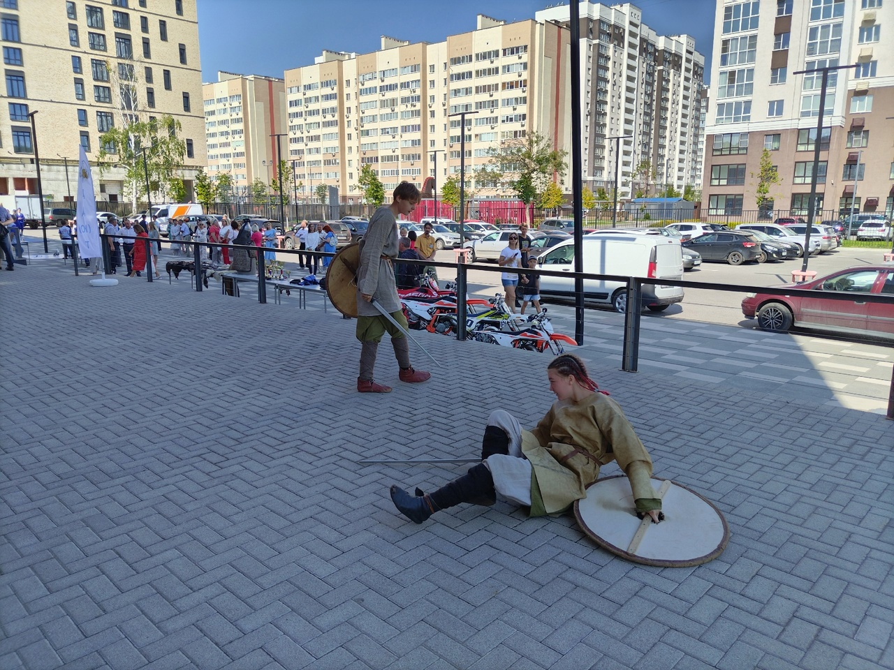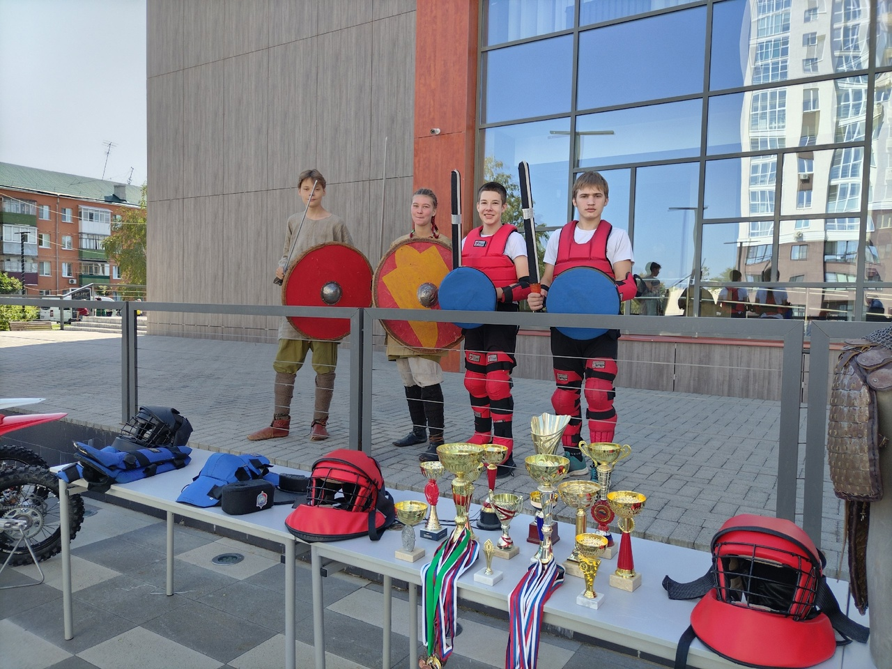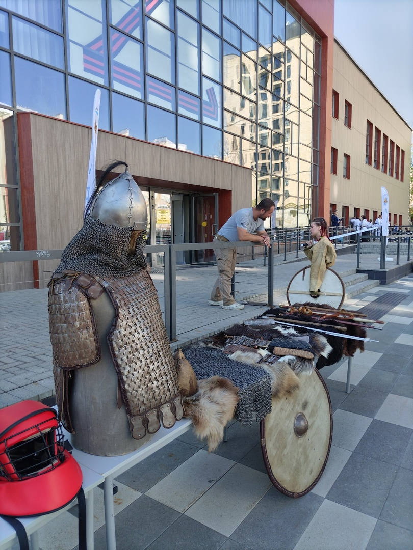 Ребята представили показательный бой арт-фехтования в исторических костюмах и презентовали секцию современного мечевого боя #ФСМБ