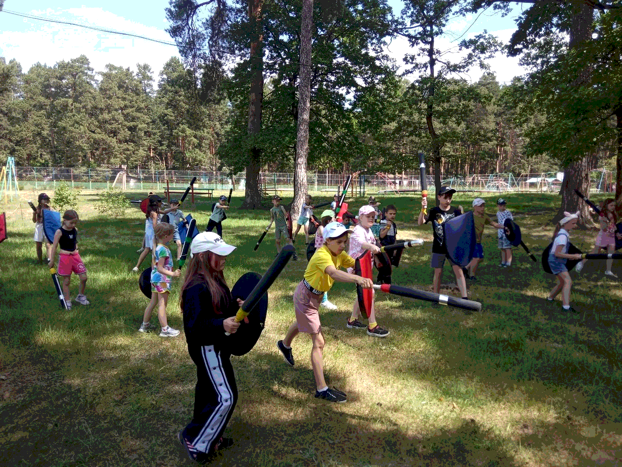 В рамках исторической смены в Детском лагере "Заря" для детей проводились ежедневные тренировки по #СМБ - современному мечевому бою.