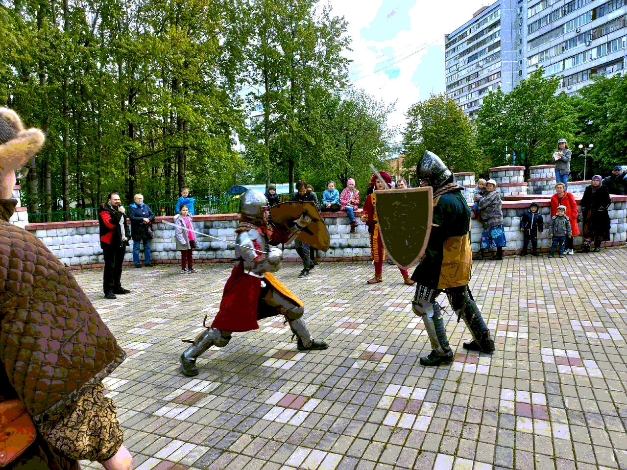 ⚔В качестве затравки был устроен конкурс «Собери рыцаря» для желающих из числа зрителей. Под руководством Ведущего Фёдора, участники, разделившиеся на две команды, должны были на скорость "запаковать" специально подготовленного рагнарца в доспех. После чего два закованных в доспех рыцаря устроили поединок – в начале классический «щит-меч», а затем экспериментальный «клевец-алебарда». Следующими всеобщее внимание приковали Иван и Михаил, начав эффектную сабельную рубку. Затем Михаил и Дмитрий показали красочный бой швейцарского наёмника и ландскнехта. В финале были устроены бои 3х3 на мягком оружии для всех желающих. По итогу все выступавшие из числа рагнарцев получили свою долю оваций. Мы же хотим поблагодарить и наших саппортов, оказавшись неоценимую услугу в проведении мероприятия!