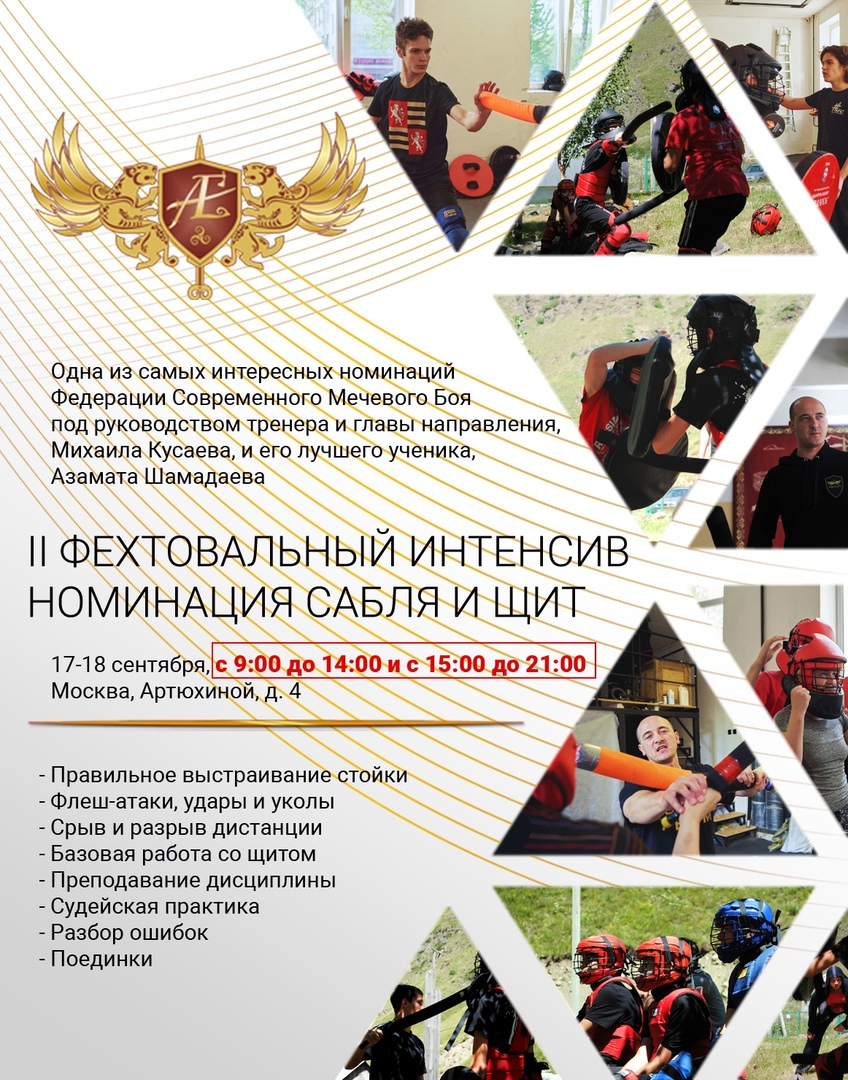 Напоминаем, что уже через 10 дней в Москве случится II интенсив по сабле и щиту от Михаила Кусаева! 🔥