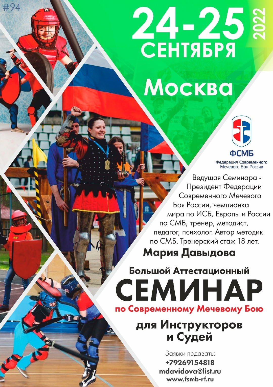 24-25 СЕНТЯБРЯ 2022 в Москве пройдёт 94-Й Большой Межрегиональный Аттестационный Семинар для инструкторов и судей по СМБ.