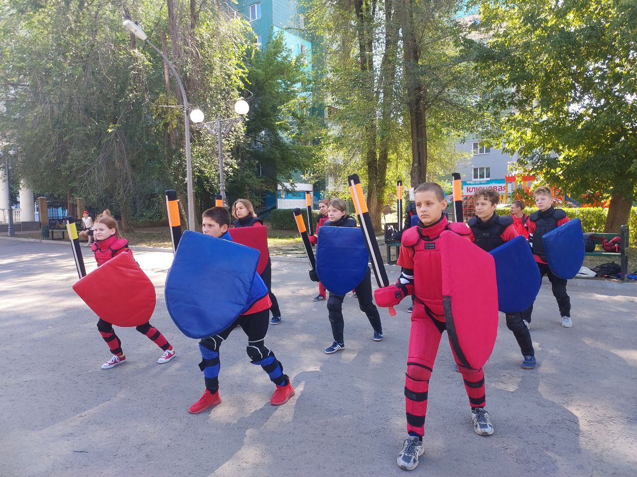 с 14 июля по 3 августа участвовали в летних сборах в Малоконстантиновке на Исаковском водохранилище, где в этом году целью спортивных сборов стала подготовка к нюансам проведения поединков в рубящих номинациях и обучение активной допустимой работе щитом.