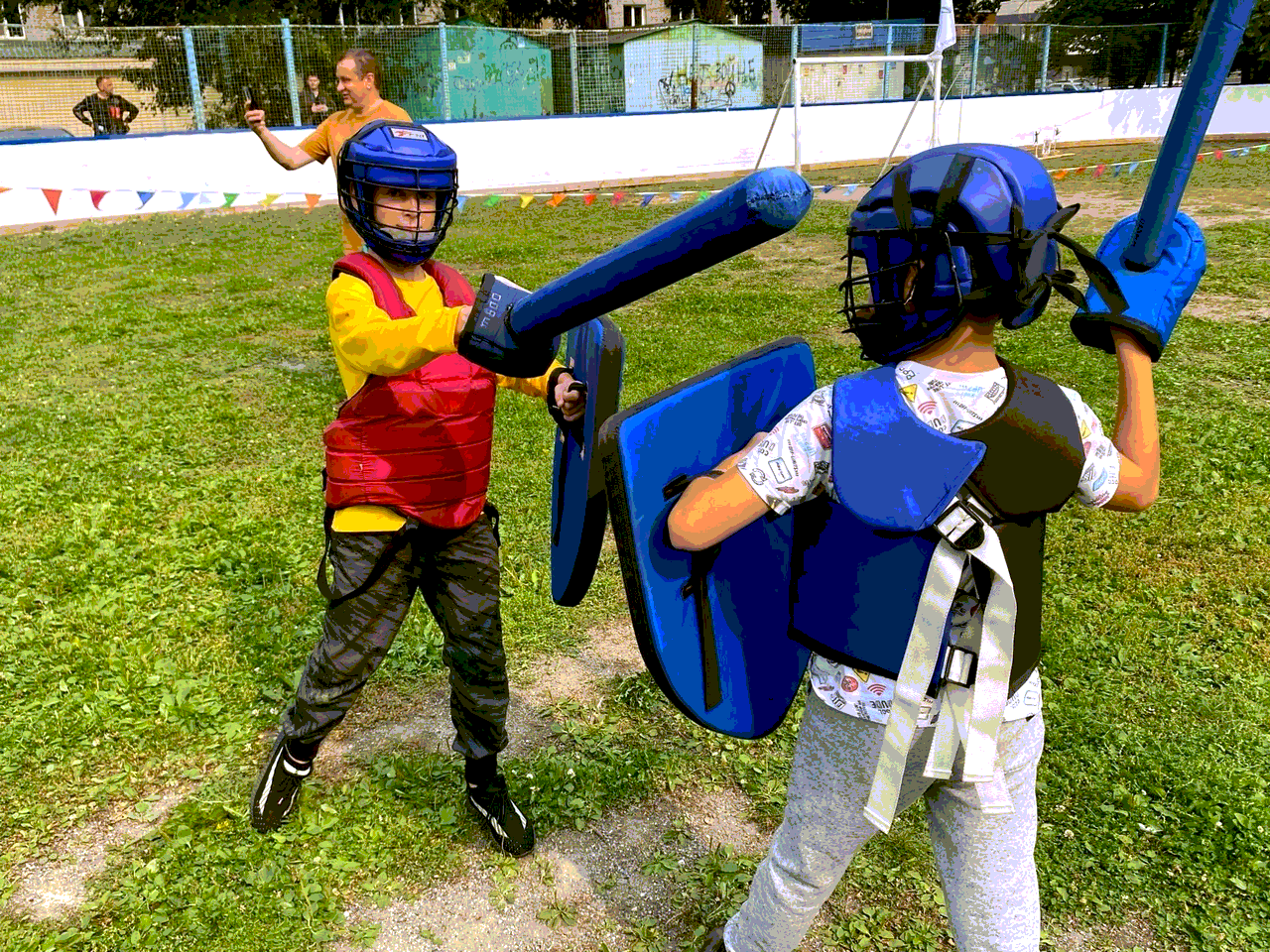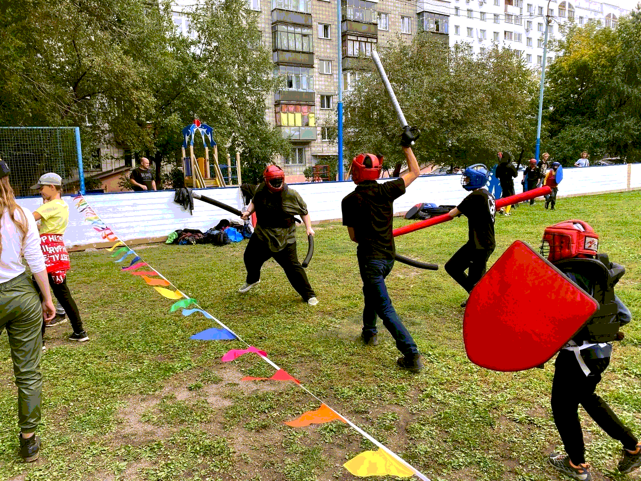 СМБ-маневры в честь начала учебного года прошли на Некрасова, 82. В боях на безопасном оружии приняли участие 16 воинов от 7 до 35 лет! Бойцы сражались команда на команду, тройками и индивидуально, пробовали оружие разных видов (мечи, копья, луки и др) и разные тактики боя. Кроме того, для всех желающих работал лучный тир и фотозона.