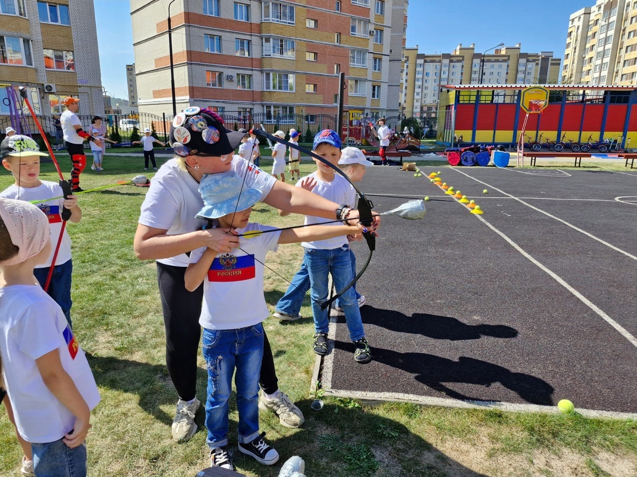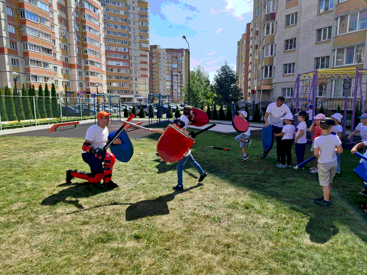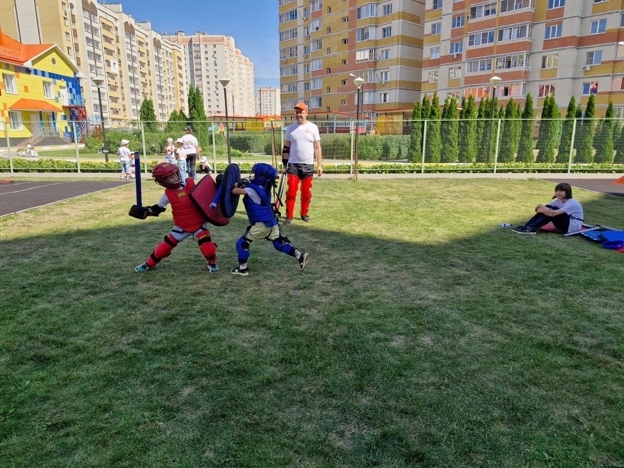 Вчера, 22 августа к Дню Российского флага мы провели открытую тренировку в детском саду "Подсолнух". Детям очень понравилось. Они с удовольствием делали "кусь", принимали участие в играх на развитие координации и ловкости, упражнялись с детскими мечами, стреляли из лука и бились друг с другом в поединках в полной защите:))