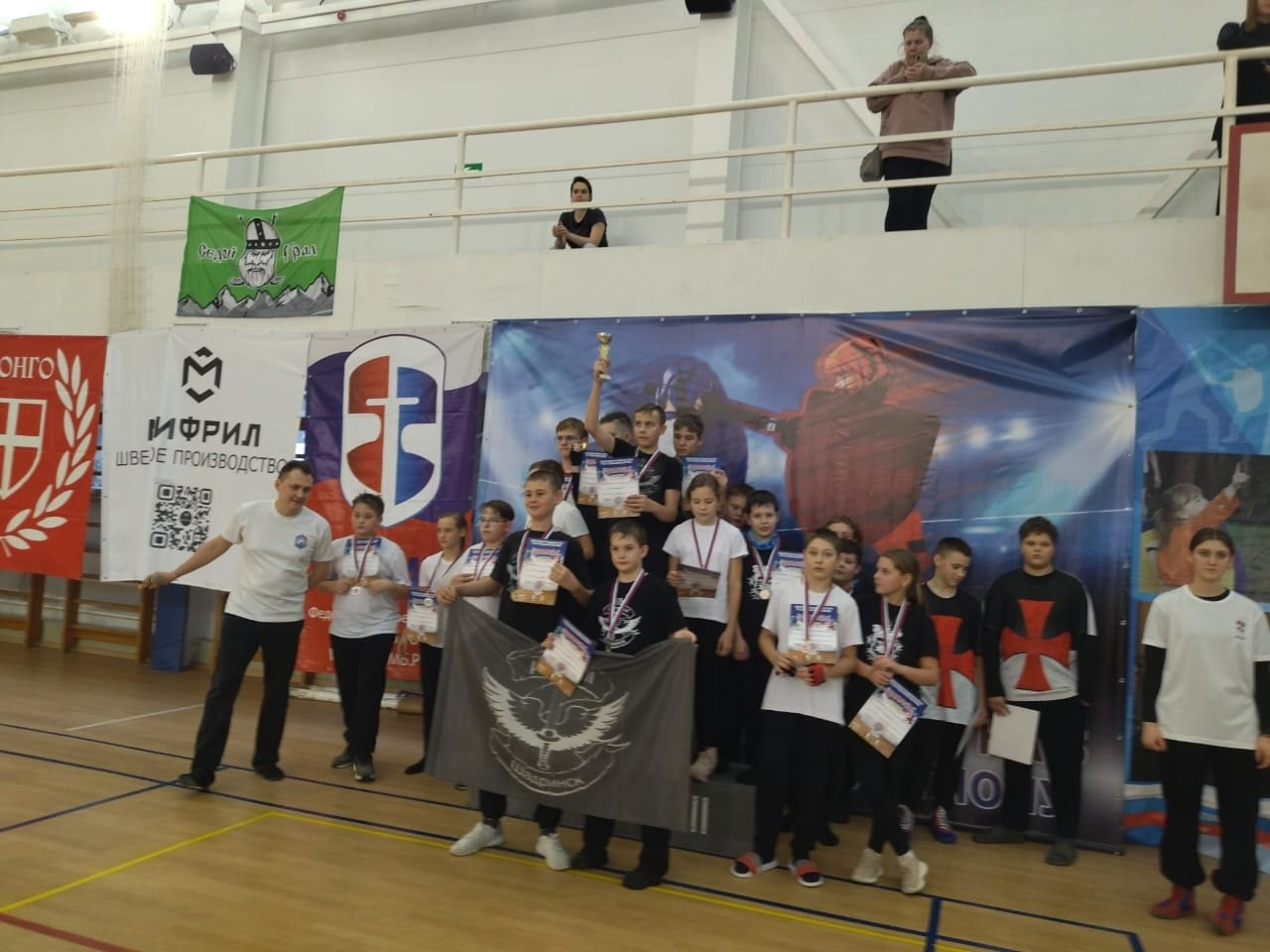 Первая: 10-11 лет, Соболь Никита, Соболь Кирилл, Терентьев Семён, Никонюк Данила, и ещё один боец из "ордена Тамплиеров", было четыре команды, и наши взяли 2 место, серебро - вообще молодцы, удивили даже нас!